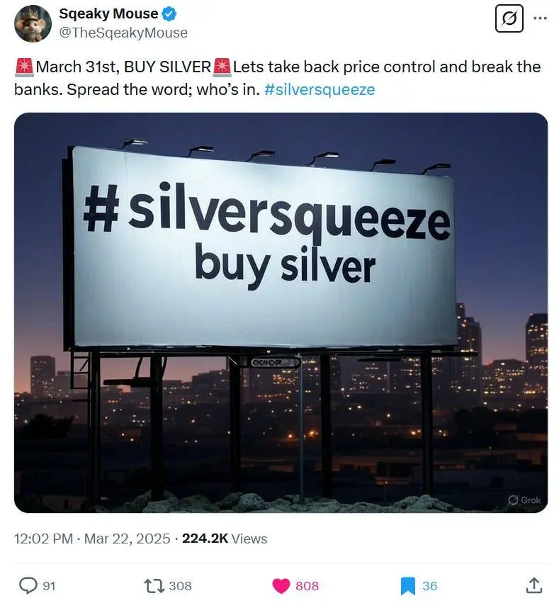 On the retail side, a new call to buy silver for March 31 has been circulating on X.